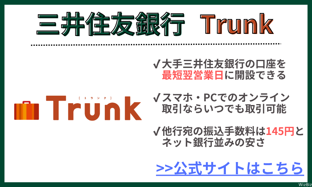 Trunkは三井住友銀行の新しい形の法人口座で、主に中小・零細・ベンチャー企業をターゲットとしたサービスです。