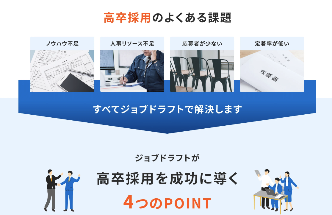 ジョブドラフトなら「投資対効果の高い高卒採用」を実現します!