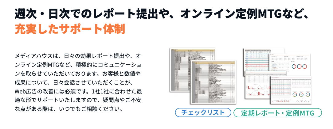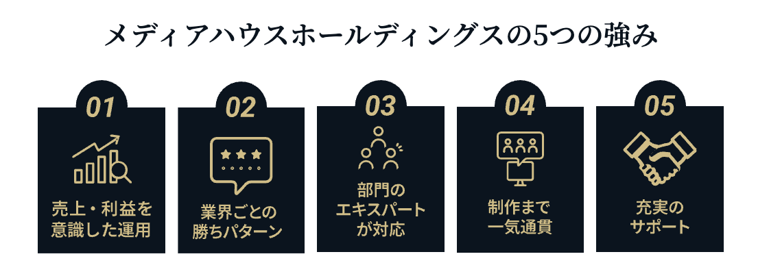 上記に1つでも当てはまる方は、5つの強みを持つメディアハウスホールディングスのウェブ広告運用代行をオススメします!