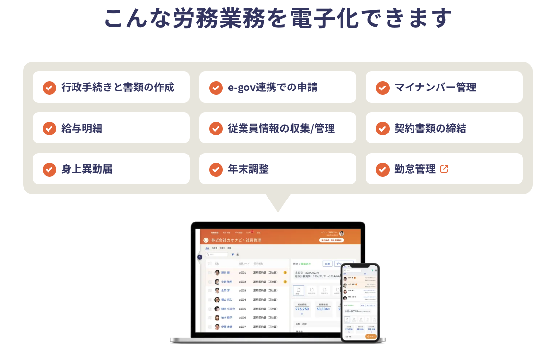 従業員管理や年末調整、給与明細、源泉徴収票の配布など、労務管理業務に必要な機能をカバーし、